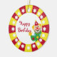 com estrelas brancas em círculo sobre fundo vermelho e amarelo à volta das bordas. Dentro o círculo é um palhaço feliz se acenando e se acenando. O texto pode ser facilmente alterado para a sua ocasião especial. Perfeito para a criança que ama o circo e os palhaços.