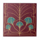 A água do Art Deco é fonte de azulejo com efeitos falsos metálicos e ligeiros brilhos em ouro e turquesa ou azul-aqua sobre fundo vermelho-cereja. Perfeito como um trivet ou para uma decoração de casa de na moda retro. Desenhada por Anne Londez.