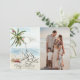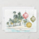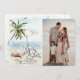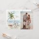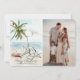 Este cartão com fotos de Natal "Feliz Natal deste lado do mundo" mostra uma palmeira com ornamentos e luzes, um par de cadeiras de praia sob o guarda-chuva numa praia arenosa em aquarela. O verso apresenta palmeiras e oceanos em aquarela. Personalize-o para as suas necessidades. Você pode encontrar produtos correspondentes na minha loja.