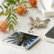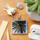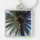 Foto de olhar para as frentes da palmeira com céu azul atrás. Palmeiras estacionam o parque em La Jolla Cove, que é um parque em LJ centro que inclui um parque de grama e acesso ao oceano. La Jolla é um subúrbio de San Diego perto da fronteira entre os EUA e o México. Foto colorida da praia oceânica tirada em La Jolla, Califórnia. Personalize a cadeia-chave das praias da Califórnia com seu próprio texto e imagens usando a opção "Personalizar a TI" para fazer chaveiros e presentes personalizados de mercadorias à beira do oceano!