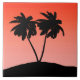 Azulejo cerâmico em uma silhueta preta de palmeiras contra fundo laranja sunset