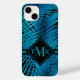 Frentes tropicais de palma de turquesa em preto, esta capa de telefone mostra seu monograma em letra chic. Escolha o TIPO/NÚMERO DO MODELO DO DISPOSITIVO e o estilo do gabinete. Crie ou dê como presente. MAIS cores e itens CORRESPONDENTES em nossa loja.