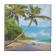 Esta foto caracteriza uma palma de coco na praia de Mirissa, Sri Lanka. Um paraíso tropical e uma praia idílico.