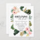 Celebrar os próximos núpcias com nosso Chá de panela "Ela é Casando". Este design espetacular apresenta um quadro moderno adornado com florais de aquarela vibrantes, incluindo palma tropical e elementos de hibisco, trazendo um toque de paraíso para o seu evento especial. Perfeito para um chá de panela temático tropical, este convite dá o tom para uma celebração inesquecível. Projetado por CaMiDesigns. Entre em contato diretamente com o Atendimento ao cliente Zazzle para receber encomendas, envio, informações sobre produtos e mais assistência.