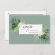 Envie este elegante e moderno RSVP 3 de Palma Tropical e Branco no cartão de refeição Sage ou Mint Green com seus convites para praias, verão e casamentos ou festas de destino, incluindo Festas de formatura. Veja nossa coleção para uma opção sem a refeição. Características pintadas à mão, cor d'água, florais brancos e palmeiras em sábado ou verde de menta para aquele luxo feito por medida. Visite esta página hoje para criar rápida e facilmente seus RSVPs usando nossos modelos.