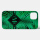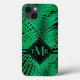 Frentes de palma verdes tropicais em preto, esta capa de telefone - PARA QUALQUER ESTILO OU NÚMERO DE DISPOSITIVO - apresenta o seu monograma em letra chic. Crie ou dê como presente. CORRESPONDENDO a itens na nossa loja.