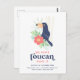 Este convite de aniversário para o tema tucano é uma escolha brilhante, divertida e alegre para qualquer comemoração de aniversário. A fonte branca e a folhagem das palmeiras tropicais é a maneira perfeita de dizer "esperamos que o tucano o faça!" Basta adicionar as informações de sua festa a este cartão para um convite de aniversário moderno e divertido.