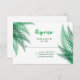A palma verde brilhante deixa sotaque este RSVP de casamento em um simples fundo branco dando a este convite uma sensação tropical enquanto abraça a nova tendência de casamento verde, fazer perfeito para o destino, verão, poolside ou casamento de praia.
