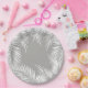 Fundo prateado para frondes de palma branca que bordam estas placas de papel - 2 tamanhos disponíveis - texto ADD, altere a cor de fundo com a nossa ferramenta de seleção de cores, basta clicar no botão PERSONALIZAR. Consulte convites e itens CORRESPONDENTES em nossa loja —> http://bit.ly/2UyWIVj <—