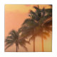 Esta foto caracteriza palmeiras em um por do sol de Miami.