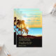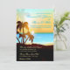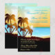 Palmeiras de praia e convites para casamentos de destino de Ocean Sunset. Use esta modelo para personalizar seus próprios convites personalizados para casamento na praia ou convites para eventos de festas na praia. Inclui cores azuis, aqua, amarela, laranja, bronze e pretas para o perfeito casamento de praia de verão.