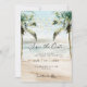 Um belo design de aquarela da praia com palmeiras e luzes brancas de cordas salvam o cartão, com uma viga coordenada do lado oposto. Fácil de editar ou excluir os campos de texto disponíveis para personalizar as informações com seus próprios detalhes. Convites e muitos outros itens nesta coleção de temas de praia tropical. Visite meu compro para ver o intervalo de cheios ou entre em contato comigo se você precisar de algo com este design não listado no momento.