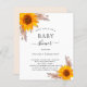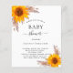 Para um chá de fraldas moderno estilo boho. Um fundo branco. Decorado com girassóis, grama de pampas. Personalize e adicione um nome e detalhes da parte.