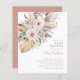 A trendy desert theme baby shower invitation. The front of this card features a hand-painted watercolor bouquet of pampas grass, dried palm leaves, eucalyptus greenery, blush pink roses, and white orchids. Below, to the right, the event details are written in a mix of classic serif typography and elegant script hand-lettering. The mom's name appears in the same dusty pink as the flowers. The cards reverse to a white diamond pattern against a pink background. Perfect for spring, summer, fall, and winter baby showers. You can change the wording using the template boxes on the right of the design, or you can click on "Edit using Design Tool" to access the more advanced changes. Change fonts, colors, placement, size, and more. Message me through the button below if you need any help personalizing these cards. As part of the budget selection on Zazzle, this sheet isn't a standard invite size or paper quality. If you want this design on an invitation card you can find it in our store or use the Zazzle Make Machine to transfer it onto the product of your choice. Please note I can't modify an existing order so be sure to write me before purchasing! If you like this style but had something else in mind, I'd be happy to work with you on a custom order. More boho baby shower designs are available in our store!