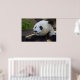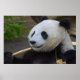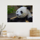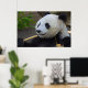 Um Panda comendo poster de bambu.tem um panda preto e branco sentado comendo um galho de bambu. Esta é uma bela foto.