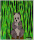 Desenho de um panda sentado cercado por bambu.