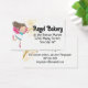 Menina ou mulher bonitinha, fada mágica ou anjo com uísque de ouro falsa neste cartão de visita para cozinheiros, padeiros ou padarias, pastelaria, turmas de cozinhar, cozinhar infantil ou assadeira, ou outra aventura profissional culinária.