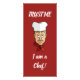 Cabeça de chef com chapéu, corcunda vermelha e texto personalizado.