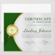 Recurso de Prêmio de Certificado de Apreciação Profissional com Tons de Gradiente Verde e Dourado, Medalha e Estrelas Verdes. Personalize ao Seu Gosto.