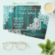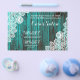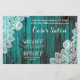 panfletos promocionais de madeira de celeiro azul turquesa com renda branca rústica