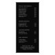 Lista de preços de salão de beleza moderno / cartão de rack de menu de serviços com o nome da sua empresa em uma caligrafia elegante no topo e seus serviços abaixo em uma fonte serifada branca sobre um fundo preto. Cada lado tem quatro seções pré-fabricadas e as informações da sua empresa estão na parte inferior do verso. Um design simples e minimalista que é ótimo para um salão de beleza, cabelo ou unhas.
