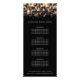 O design de placa de rack elegante mostra seus serviços, sua lista de preços ou informações comerciais de forma excelente. Design apresenta uma borda superior das luzes de string do ouro com um efeito de travamento desfocado, com seu nome e/ou nome comercial embaixo. Inclui quatro títulos personalizáveis e campos de texto do corpo, e espaço para as informações de contato da sua empresa na parte inferior. Para ajustar o layout, digite seu texto e use a função Personalizar para alterar o posicionamento e os tamanhos de fonte.
