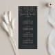 O design de placa de rack elegante mostra seus serviços, sua lista de preços ou informações comerciais de forma excelente. O design apresenta a inscrição branca clássica em um fundo preto suave com fios de cordas de folhas falsas rosa douradas em cascata a partir do topo. Inclui quatro títulos personalizáveis e campos de texto do corpo, e espaço para as informações de contato da sua empresa na parte inferior. Para ajustar o layout, digite seu texto e use a função Personalizar para alterar o posicionamento e os tamanhos de fonte.