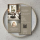 Cartão de rack moderno e profissional projetado para apresentar seus serviços com clareza e impacto. Com um layout limpo que destaca seu nome, serviços principais e um código QR para fácil acesso ao seu portfólio e detalhes de contato, este design ajuda a criar uma presença de marca polida e coesa em todos os pontos de contato do cliente.