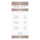 Um estilo elegante para o seu nome ou nome comercial está centrado no topo de um padrão de folha rosa dourada falso no cabeçalho desta placa de rack personalizável. Todos os tipos são totalmente personalizáveis e podem ser modificados para diferentes marcas. Essas placas de rack são perfeitas para listas de preços, menus de serviço ou usos de promocional. Design © 1201AM Design Studio