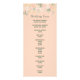 Um programa de casamento elegante e romântico. Rosas de cor aquosa, flores de cor branca e cor-de-rosa esbranquiçada. Modelos para seus nomes, datas, detalhes da cerimônia e da festa. Fundo branco na frente, cor de cobre na parte traseira. Cartas verdes.
