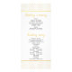 Moderna cerimônia de casamento e programa de festas. Esta design mostra folhas de Split Leaf Philodendron (Monstera deliciosa) ou de Queijo Suíço e folhas de palma em coral vivo com contorno de ouro. Um quadro branco com contorno dourado inclui seu texto. O verso exibe um padrão de bolinhas em ouro e branco.