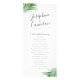 Folhas de palma verdes tropicais e borda geométrica dourada em um programa de casamento de praia de destino barato. — Clique em PERSONALIZAR para alterar as fontes, organizar o texto e selecionar qualquer cor de fundo para coordenar com o seu elegante casamento de praia.—