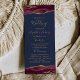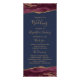 Este elegante e moderno programa de casamento mostra borgundy agate bordas aparadas com dourado falso brilho. O texto aparece em letras elegantes douradas e fontes copperplate em um fundo azul escuro de marinho.