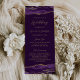 Este elegante e moderno programa de casamento mostra fronteiras agitadas roxas aparadas com brilho dourado. O texto aparece na caligrafia na moda dourada e sans serif fonts em um fundo de ameixa.