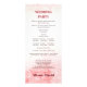 Esta cerimônia temática japonesa e programa de casamento de festas mostra uma bela design de galeria de aquarelas. Esse design minimalista incorpora uma linha vertical no lado esquerdo, que se estende perfeitamente para a parte superior do programa quando os nomes dos casais são adicionados. O galho é representado em um estilo simples, com tons quentes de marrom e laranja, criando um contraste visualmente atraente contra o fundo de lavagem da aquarela do teracotta. A parte de trás do programa também apresenta o mesmo fundo de lavagem com aquarela cativante, ligando harmoniosamente todo o design.