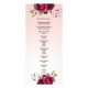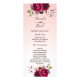Um programa de casamento elegante, moderno e romântico. Modelos para seus nomes, datas, detalhes da cerimônia e da festa. Um fundo rosa, cor-de-rosa pincelado, florais decorados, flores em burgundy e rosa. Letras pretas coloridas.