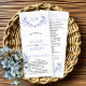 Moldura floral azul com cerimônia de casamento e programa de festas de monograma. Esta cerimônia de casamento e programa de festas mostra uma bela design, perfeita para comemorar o dia especial. O programa apresenta um quadro floral azul inspirado na safra que rodeia graciosamente o monograma do casal. As iniciais são apresentadas numa forma sofisticada de azul, criando um ponto focal no delicado arranjo floral. A design geral exude encanto romântico e fornece aos hóspedes o calendário dos eventos tanto para a cerimônia de casamento quanto para a festa comemorativa depois.