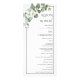 Este programa de cerimônia floral de núpcias e cerimônias de cerimônia floral do ORÇAMENTO apresenta um ramo de eucalipto enfeitiçado com flores brancas e folhas verdes de sábio no canto superior esquerdo. Os nomes dos casais são exibidos elegantemente em letras decorativas, e uma fina borda preta enquadra todo o design.