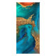 Um retângulo brilhante de folha de ouro falsa com tipografia manuscrita sobrepõe um rico fundo de aquarela azul-turquesa com veios dourados e laranja-amarelo neste cartão de menu de lista de preços de salão de beleza moderno e elegante. O metálico dourado falso macio é um pano de fundo para seus serviços e preços. Personalize com o nome da sua empresa, informações completas de preços e informações de contato com os modelos personalizáveis. Faz uma declaração elegante, profissional e sofisticada para todos os seus clientes.