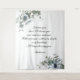 Pano de fundo para casamento com verso personalizável e decoração floral nativa azul.