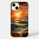 Matizes ouros de um pôr do sol de praia mesmerizante, onde a vasta extensão do oceano encontra o brilho fervoroso do céu, criando uma pintura inesquecível.