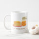 Um design da caneca do casal que caracterize uma pilha de panquecas em uma placa com chuvisco do xarope de bordo e fatia de manteiga que se emparelha com um recipiente do xarope de bordo com etiqueta da licença do bordo. O texto lê-nos "pertence junto!" com dois corações.
