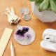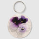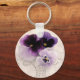 foto de três pansias em tons roxos em um delicado pano de trabalho