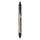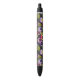 Esta caneta tem um design floral com pansias roxas e amarelas sobre uma cinza azul escura - perfeito para qualquer jardineiro ou amante de flores!