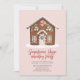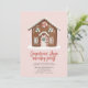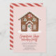 Este convite cor-de-rosa festivo apresenta uma grande casa de pão de gengibre de aquarela, decorada com gelo branco e hortelã-pimenta verde e vermelha, com flores de neve ao redor da casa. Na parte traseira da placa você encontrará um padrão de listras cor-de-água rosa e vermelha. O cartão também apresenta tipografia de vintage para os detalhes do partido e um roteiro caprichoso para o título do evento em vermelho.