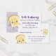 Fatias bonitas de pão com manteiga a andar neste cartão de padaria para o seu negócio de assar em casa.