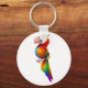 Um design maravilhoso de um papagaio muito colorido. Este papagaio está do lado e tem um arco-íris de cores com as suas penas que parecem espantosas. O papagaio também tem grandes olhos no google. Este design de papagaio parece excelente neste chaveiro. Perfeito para si mesmo ou como presente