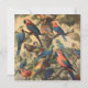 pintura em vintage de uma cena botânica com papagaios coloridos sentados num galho numa árvore