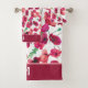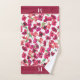 Este conjunto colorido de toalha de banho de 3 partes tem imagens de papoila floral roxa, rosa e tangerina que enchem o padrão. Junto com as várias imagens da papoila estão folhas e caules verdes e macios. É virtualmente um caleidoscópio de cor, e definitivamente iluminará qualquer banheiro. Na toalha do banho e na toalha da mão, cada extremidade tem uma borda sólida correspondente ao seu monograma. Certifique-se de ver a cortina de chá e o tapete de banho na nossa loja.