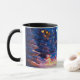 Uma foto real de Papai Noel, uma árvore de Natal enfeitiçada com brinquedos, colocada em uma floresta de Ano Novo 3D com destaques luminosos, cria uma cena mágica nessa caneca. A singularidade está na mistura da realidade e da fantasia, fazer uma adição especial e encantadora à sua coleção de férias.